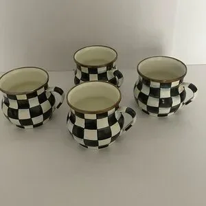 Mackenzie-Childs Courtly Check Coffee Mugs or Teacups Black & White Set of 4