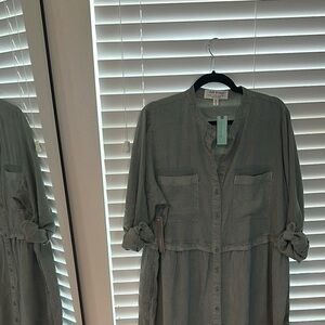NWT-Anthropologie -Cloth and stone-Size-1X-Gray Button-Down Dress-