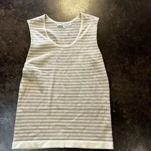 Stylish sleeveless top with stripes. Perfect for everyday wear. Length 23” bust 32” worn and loved with no problems . I do not trade or negotiate