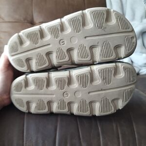 Reel Legends men's slip on clogs. Adjustable straps. Green camo print. Size 41-(8). Condition: gently pre-owned, some wear on the logo and the sides.
