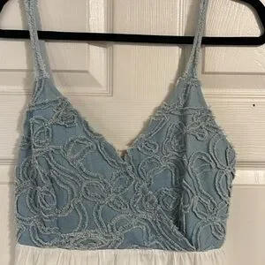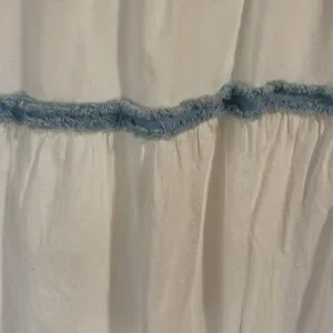 SOLD - Sexy Frayed Denim and White Cotton Sundress