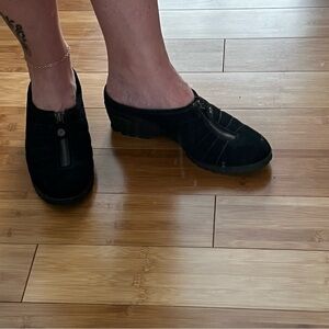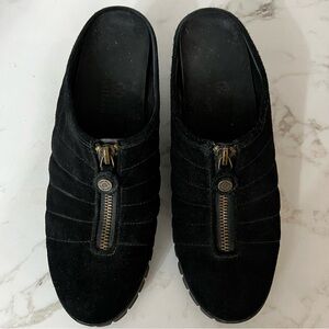 Black suede leather Cole Haan slide on mules with Nike Air soles. Great, clean condition.