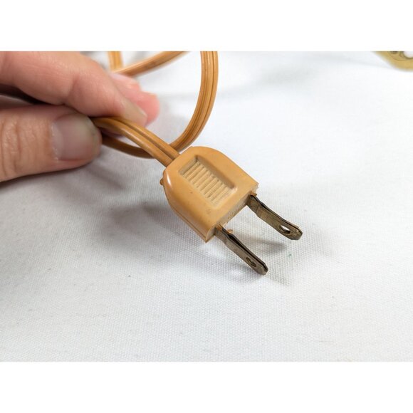 There is a small twisty on-off switch to the side and the long beige coloured lamp wire looks older, with the North American 2 prong plug not being in great shape. A re-wire is not necessary as the lamp works, but would be recommended if you plan to use the light more intensively.
