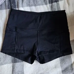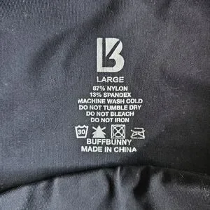 BuffBunny Collection size Large, extra short shorts. Excellent, durable fabric. Gently worn, in excellent condition. Washed on delicate cycle only and only worn a few times. Just a little too short for my personal comfort (lol).