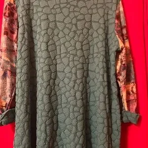 Vibrant tunic top by Ali Miles with a unique textured pattern. Features a mix of teal, yellow, and purple. Has decorative buttons on the front - 3/4 sleeves with same decorative button as shown in picture - size XL- light weight for summer -machine wash and tumble dry - excellent condition - $10- thanks for looking !