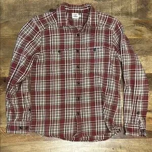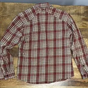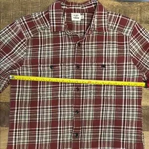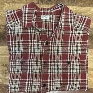 FLINT AND TINDER heavy weight 100 percent cotton dark red and white button down.