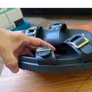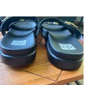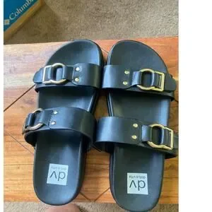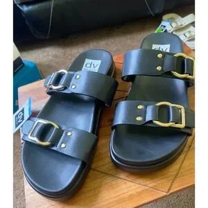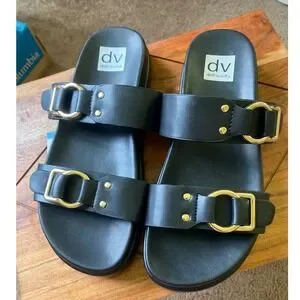 Keywords: Dolce Vita sandals, black slide sandals, buckle sandals, women's sandals, slip on sandals, comfortable sandals, casual sandals, summer shoes, size 9 sandals, black and gold sandals, double strap sandals, fashion sandals, stylish sandals