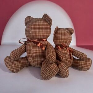 Charming plaid teddy bear set in brown. Perfect for decor or gifting. Available in 2 sizes. These are handcrafted by me with 100% cotton fabric exterior and a mixture of polyfil and poly pellets interior to give them a nice fullness and weight.