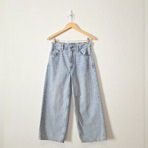 Details: light wash, high rise, wide leg, cropped fit, zip fly
