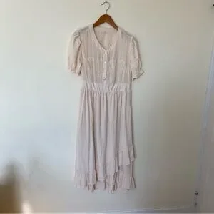NWOT Petallush Ivory Short Sleeve Ruffle Midi Dress Sz M