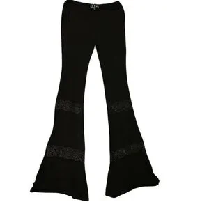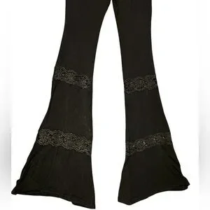 POL Black Flare Pants with Lace Detail