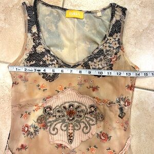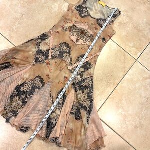Very beautiful sleeveless dress. Lined, beaded details, patchwork style, light and stretchy fabric. Ideal for any event.