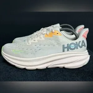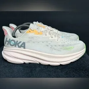Hoka Women's Clifton 9 Lace Up Athletic Shoes Vanilla/Astral SIZE 10 D WIDE