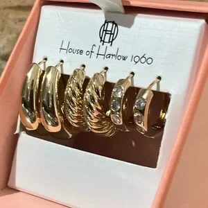 House of Harlow 1960 Gold Earrings Set New