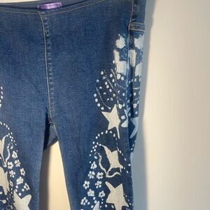 Chic blue denim jeans. Features a stylish design. Gently worn. Measurements outseam: 40.5 in inseam; 32in thigh 8.5in rise: 8.5 in waist 13.5 in