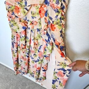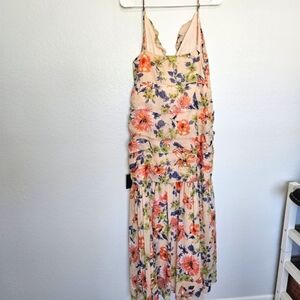NWT Lulus | Stunning Soiree Blush Pink Floral Print Ruched Midi Dress Womens XL