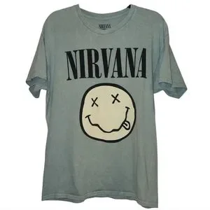 Embrace the legendary spirit of grunge with this iconic Nirvana "Smiley Face" t-shirt! This isn't just a band tee; it's a timeless symbol of an era that redefined music.