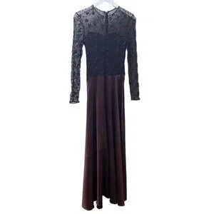 PAMELA DENNIS Couture Silk Evening Gown Sz 10 Formal Long Dress Burgundy Black