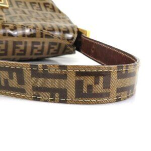 FENDI Zuccino Shoulder Bag Brown PVC/Goldtone -