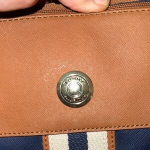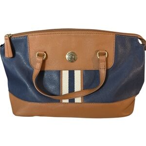 Tommy Hilfiger Blue and Tan Structured Tote with Gold Accents new clean