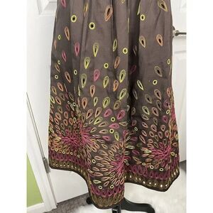 This beautiful Anthropologie dress designed by Tabitha Brown is a must-have for any stylish woman's wardrobe. The dress is made of high-quality cotton material with exquisite embroidery accents that add a touch of elegance. The dress has a sleeveless design and knee-length dress length, perfect for a summer, fall, or spring event.