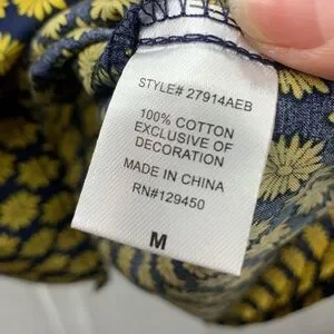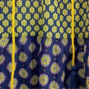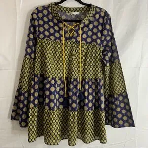 Earthbound Trading Co. Mixed Print Boho Tiered Cotton Navy Peasant Tunic, size M