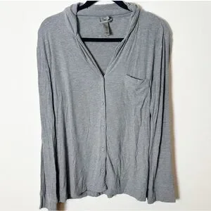 Indulge in the soft comfort of this SKIMS gray pajama top, designed with a relaxed fit for ultimate relaxation. Crafted from a cozy knit material, this minimalist sleepwear piece offers timeless style and comfort for a restful night's sleep.