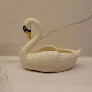 PORCELAIN Ceramic Swan white trinket holder 4"h x 5"w