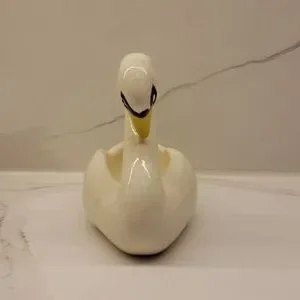#539 Porcelain Ceramic Swan white trinket holder 4"h x 5"w