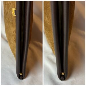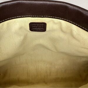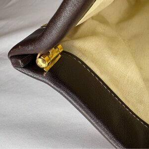 ❌SOLD❌ LOEWE Suede Brown Clutch with Hinged Structured Opening in stunning dark tan, similar to a caramel hue, with dark brown trim.