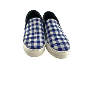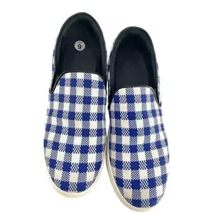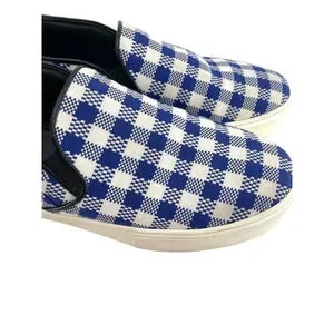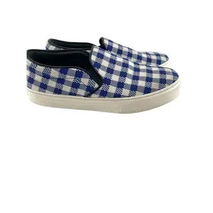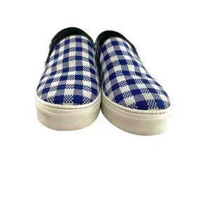 Celine Paris Womens Size EU 40 Slip On Blue Plaid Print Canvas Sneakers Shoes