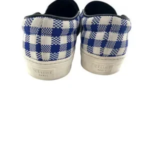 Celine Paris Womens Blue Plaid Print Canvas Slip On Sneakers Shoes Size Eu 40 US 9.5minor areas with smudges and scuffs see pictures