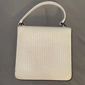 EUC Vintage Savatore Ferragamo White Textured Satchel Bag with Silver Hardware