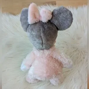 This charming Disney Minnie Mouse stuffed animal features a soft pastel pink and gray design, perfect for snuggling. With Minnie's signature ears and a sweet expression, it's an ideal companion for playtime and comfort. The plush toy's gentle colors and cuddly texture make it a delightful addition to any toy collection.
