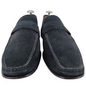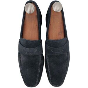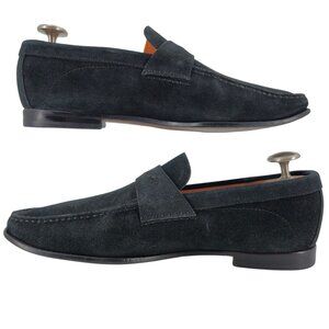 Santoni Italy Navy Blue Suede Leather Dress Shoes Mens Size 10D Slip-on Loafers