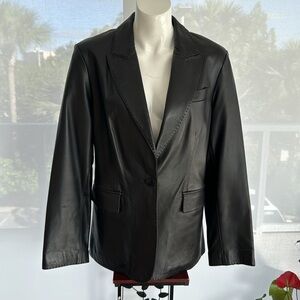 Brook Brothers 100% lamb leather black super soft blazer- jacket , one button, size L