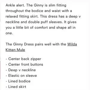 The Ginny Dress from Reformation is slim fitting throughout the bodice and waist with a relaxed fitting skirt.