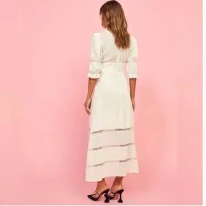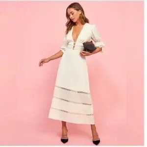 Reformation Ginny Lace-Trimmed Pintucked Georgette Midi Dress Size 6 Ivory White