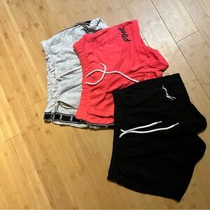 Stylish women's shorts by PINK Victoria's Secret. Includes gray, black, and pink options. Comfortable fit with drawstring waist. Excellent used condition, maybe worn 2-3 times. Soft comfortable terry knit material. Smoke free home .