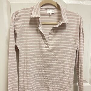 Size XS. Beige and white striped Longsleeve top. Split neck with collar. Soft cotton material. Great condition. KC-85