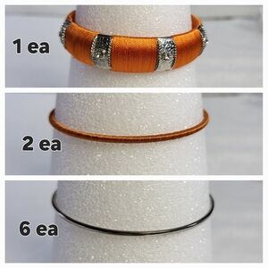 Orange Thread Wrapped Bangles with Silver Accent Stackable Statement Bracelets