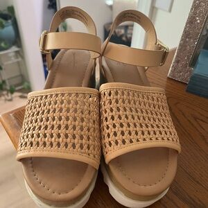 Step out in style with these chic tan woven platform sandals. Perfect for any occasion, these sandals offer both comfort and elegance. Only worn once. Universal Thread brand in a women’s size 7. Very comfortable and perfect for summer! Open to offers 😊