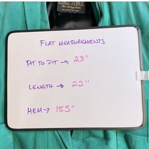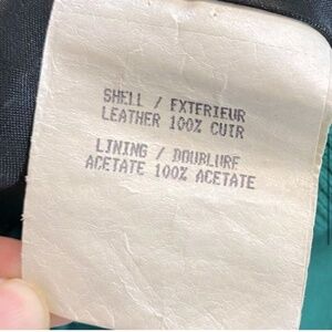 Super cool 90s leather jacket. Great vintage condition. Minor signs of wear shown in pics. Has shoulder pads. Is awesome. Nice bright Teal colour. No size tag. Size M chosen based on fit and measurements in pics. Could also fit L, please see measurements.