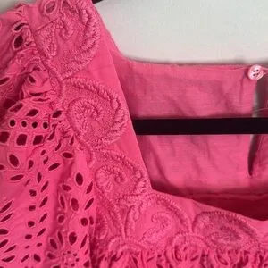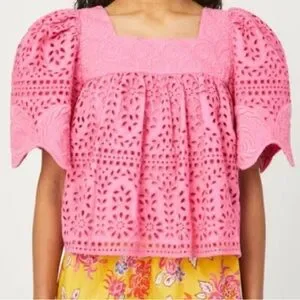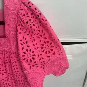 RHODE MIKA soleil eyelet blouse, bright pink preowned has a little wear, but still beautiful see all the pictures there are no stains or tears just a little threading at the edges. It is lined and non-Stretch retails $345.