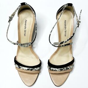 Alexandre Birman Snakeskin Black Suede Braided Strappy Sandals Heels Stilettos.
