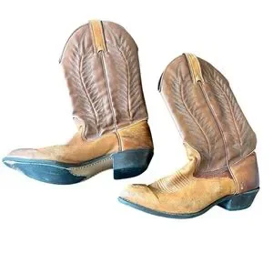 Texas leather leather cowboy boots size 7 in used condition with some scratching and staining see photos