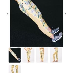 Beautiful floral print leggings. Features yellow and blue hues. Comfortable and stylish. Reflective and mesh on sides. See matching listing.