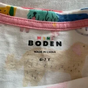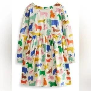 Charming dress with a lively animal print. Features a mix of bright colors. Ideal for casual outings.