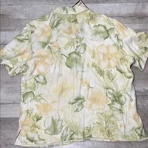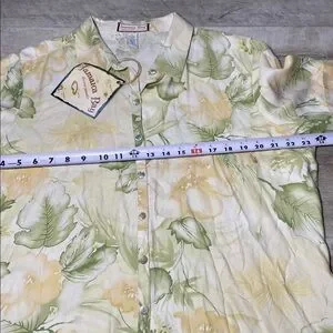 Green and Yellow Casual Button Down Shirt with Floral Pattern Vintage
