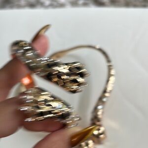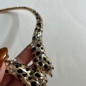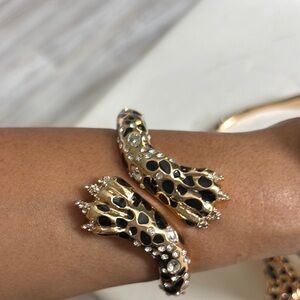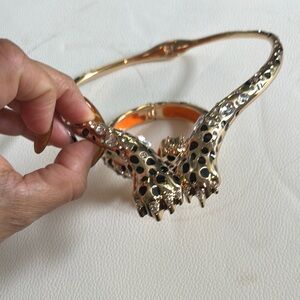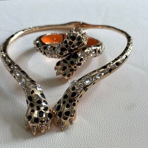 Elegant gold and black leopard jewelry set. Features sparkling accents. Perfect for a bold statement.